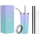 The Iron Flask classic tumbler features a 24 oz. vacuum insulated 18/8 stainless steel body that stays condensation free with a durable powder coated finish. It keeps drinks cold up to 16 hours and hot up to 4 hours, and comes with a splash proof straw lid, two stainless steel straws, two plastic straws, and cleaning brushes. It's cup holder friendly and BPA free.